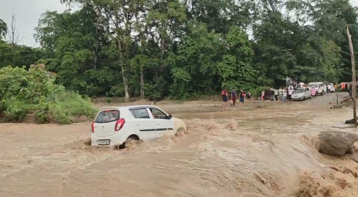 ताजा मामला चोरगलिया नदी का है, जो गोलापार और चोरगलिया को जोड़ती है। यह नदी इस समय अपने पूरे उफान पर है। क्षेत्रवासियों ने बताया कि नदी में जलभराव इतना अधिक है कि लोग जान जोखिम में डालकर आना-जाना कर रहे हैं। यही नहीं, स्कूली बच्चों को ले जा रहे वाहन भी इसी नदी से होकर गुजरने को मजबूर हैं, जिससे बड़ा हादसा होने की आशंका बनी हुई है।