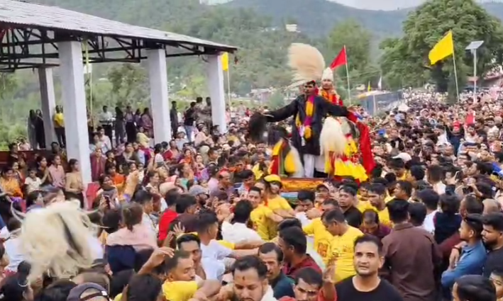 कलीगांव, डैसली और रायनगर चौड़ी से निकले रथों को श्रद्धालुओं ने रस्सों के सहारे दुर्गम पहाड़ियों और कठिन चढ़ाई पार कर देवीधार मंदिर तक पहुंचाया। मां के जयकारों और ढोल-नगाड़ों की गूंज से पूरा क्षेत्र भक्तिमय हो उठा।