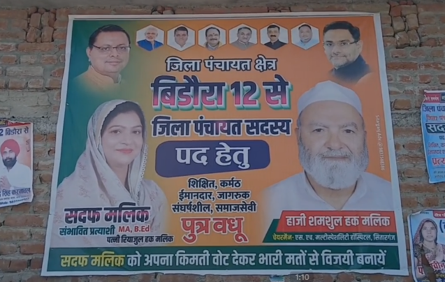 त्रिस्तरीय पंचायत चुनाव की घोषणा के बाद उधम सिंह नगर की जिला पंचायत वार्ड 12 बिडोरा से भाजपा समर्थित प्रत्याशी सदफ मलिक ने चुनावी मैदान में पूरी ताकत झोंक दी है।
