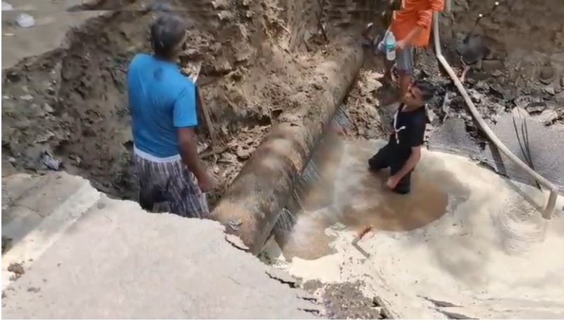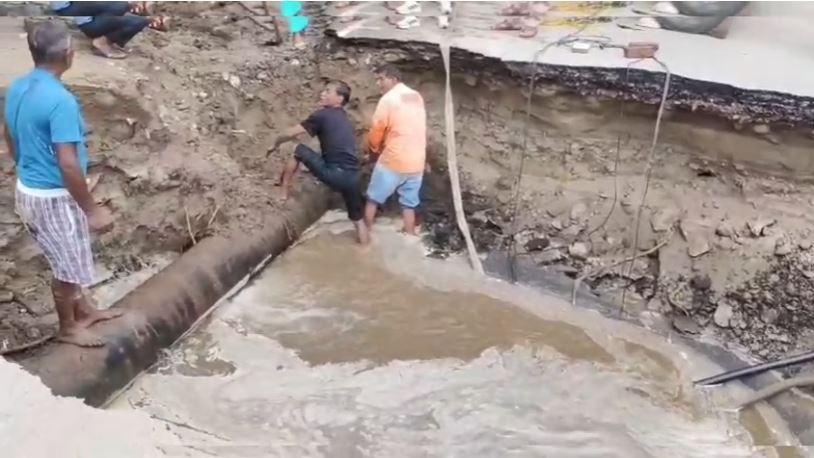 जल संस्थान की मेन पाइपलाइन के क्षतिग्रस्त होने के कारण सड़क का एक बड़ा हिस्सा बैठ गया, जिससे मार्ग पूरी तरह बाधित हो गया और यातायात पर असर पड़ा।