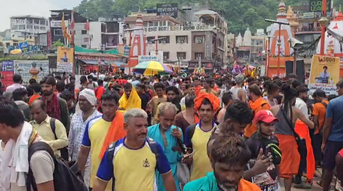 सावन मास के द्वितीय सोमवार पर हर की पौड़ी पर शिवभक्तों की अभूतपूर्व भीड़ उमड़ पड़ी। लगातार हो रही बारिश के बावजूद भक्तों की आस्था में कोई कमी नहीं दिखी। लाखों कांवड़ियों ने गंगा जल लेकर भगवान शिव का अभिषेक करने के लिए हर की पौड़ी में डुबकी लगाई।