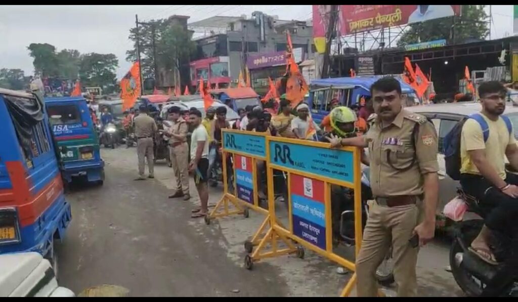 कांवड़ मेले के दूसरे सोमवार को डाक कांवड़ियों और अन्य श्रद्धालुओं की भारी भीड़ जलाभिषेक के लिए नीलकंठ महादेव मंदिर की ओर रवाना हुई,