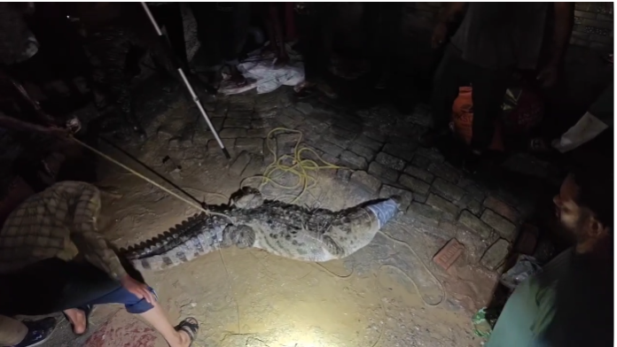 वन विभाग के अनुसार, मगरमच्छ को सुरक्षित रूप से सूखी नहर में छोड़ा गया है। भीषण बारिश के बावजूद मगरमच्छ को देखने के लिए बड़ी संख्या में लोग मौके पर जुटे रहे।