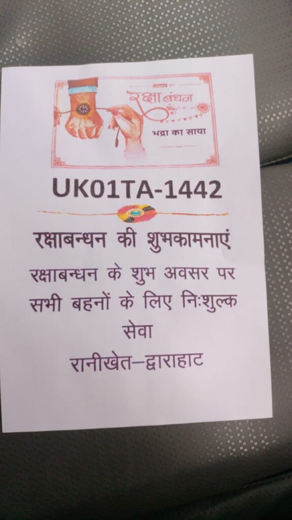 राजेंद्र पंत ने रक्षाबंधन के अवसर पर बहनों के लिए निशुल्क टैक्सी सेवा उपलब्ध कराई है, जो वलना गांव से रानीखेत और रानीखेत से द्वाराहाट तक चलाई जाएगी।