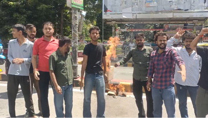 घोषणा के तुरंत बाद NSUI के प्रदेश सचिव के नेतृत्व में कार्यकर्ताओं ने राजकीय महाविद्यालय के बाहर प्रदर्शन करते हुए सरकार और प्रशासन के खिलाफ पुतला दहन किया।