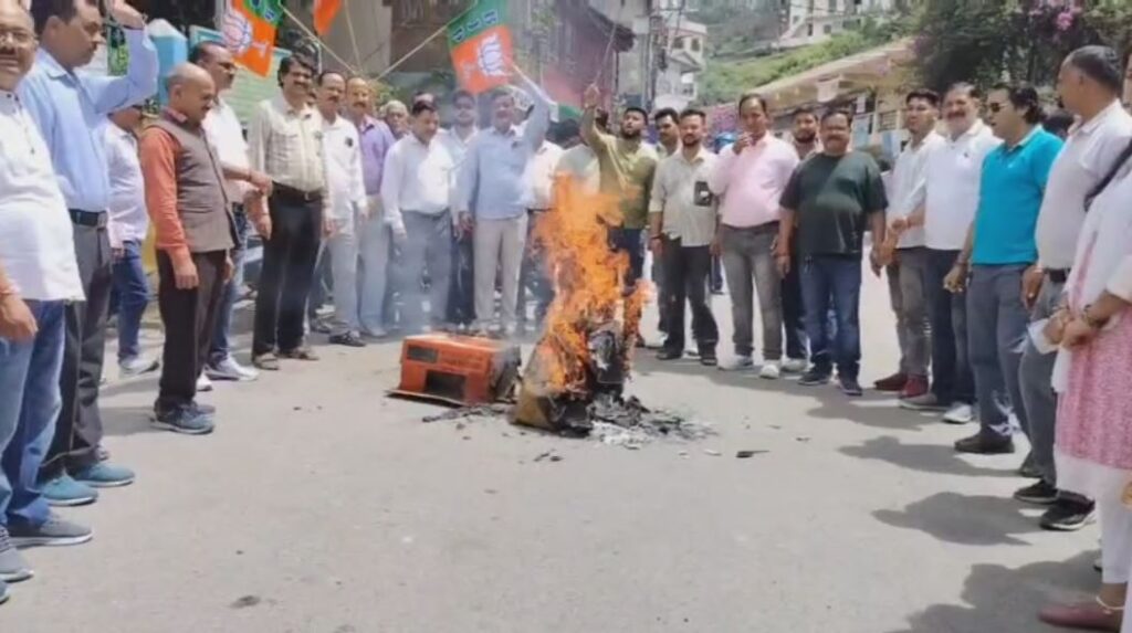 गैरसैण में विधानसभा सत्र के दौरान कांग्रेस विधायकों के हंगामे और तोड़फोड़ से नाराज़ भाजपा कार्यकर्ताओं ने आज ज़बरदस्त प्रदर्शन किया। कार्यकर्ताओं ने कांग्रेस का पुतला फूंककर अपना विरोध दर्ज कराया और कांग्रेस विधायकों के खिलाफ जमकर नारेबाज़ी की।