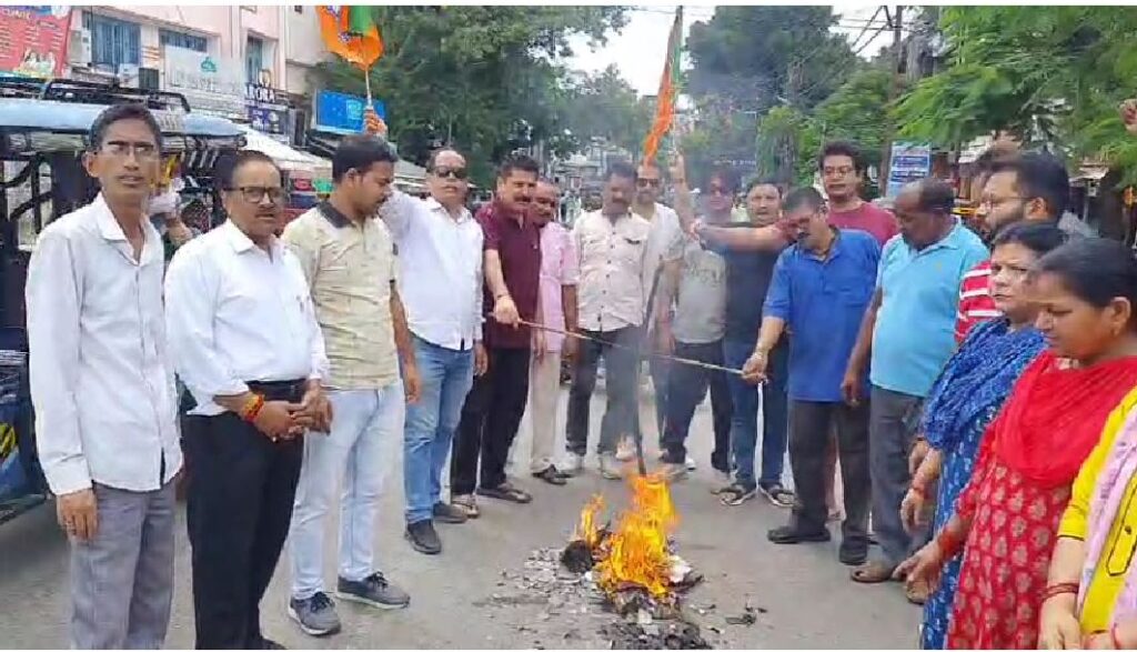 इस दौरान कार्यकर्ताओं ने कांग्रेस का पुतला फूंका और जमकर नारेबाजी की। भाजपा ने कांग्रेस नेतृत्व पर लोकतंत्र को आहत करने का आरोप लगाया।