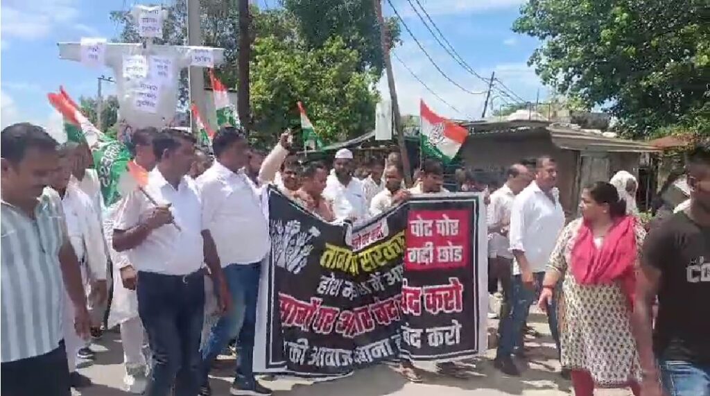 प्रदर्शन में शामिल कार्यकर्ताओं ने नारेबाज़ी कर भाजपा सरकार को किसान विरोधी बताते हुए सरकार बदलने की अपील की।