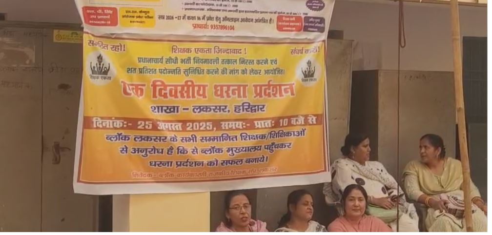 लक्सर खंड शिक्षा अधिकारी कार्यालय पर धरना दे रहे शिक्षकों ने आरोप लगाया कि सरकार शिक्षकों के हितों पर लगातार कुठाराघात कर रही है।