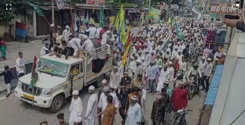 इस्लामी झंडों और तिरंगे से सजी जुलूस की शान