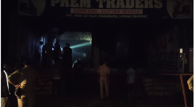 लालकुआँ क्षेत्र के बिन्दुखत्ता स्थित मुख्य बाजार में उस समय अफरा-तफरी मच गई जब प्रेम ट्रेडर्स नामक इलेक्ट्रिक स्कूटी शोरूम में देर रात भीषण आग लग गई। आग के कारणों का अभी तक पता नहीं चल पाया है, लेकिन शोरूम में रखी करीब 100 ई-स्कूटी और 40 लाख रुपये की बैटरियाँ सहित लाखों का सामान जलकर पूरी तरह खाक हो गया।