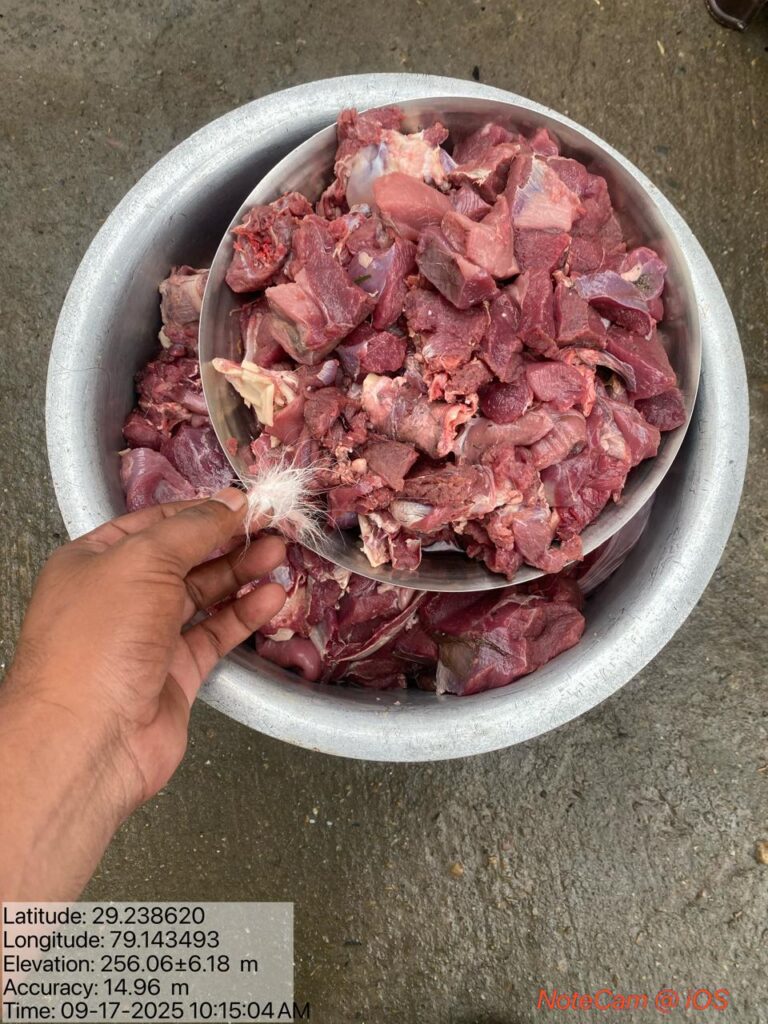 नगर के बन्नाखेड़ा क्षेत्र में प्रतिबंधित वन्यजीव चीतल के मांस की सूचना मिलने पर वन विभाग की टीम ने बड़ी कार्रवाई करते हुए छापेमारी की। मौके से 13 किलो से अधिक कच्चा मांस बरामद किया गया, जबकि एक आरोपी जगत सिंह मौके से फरार हो गया। दो अन्य अभियुक्तों को मौके पर ही पकड़ लिया गया है।