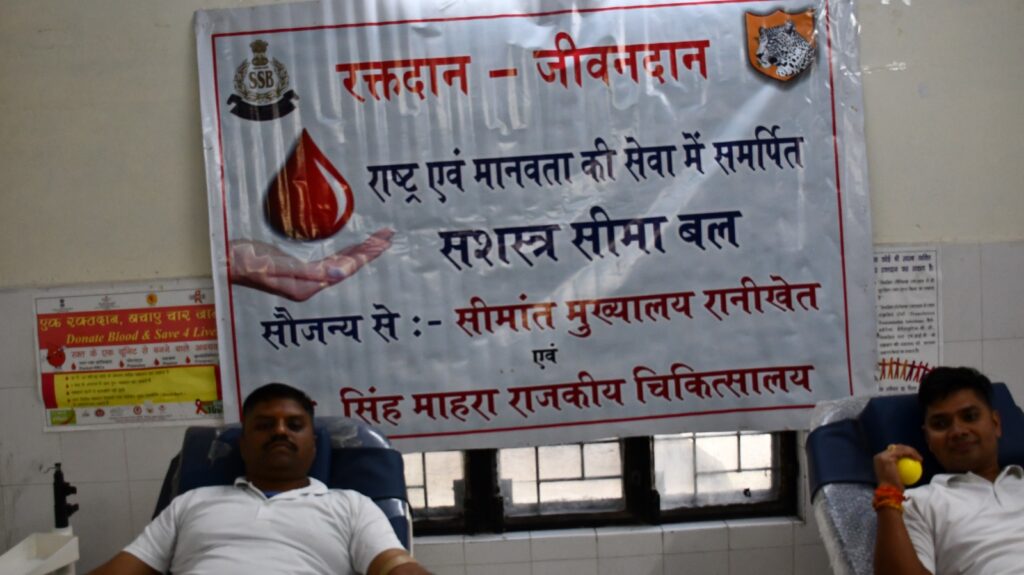 रानीखेत। भारत सरकार के गृह मंत्रालय के निर्देशानुसार और महानिरीक्षक सीमांत मुख्यालय अमित कुमार के मार्गदर्शन में “स्वस्थ नारी सशक्त परिवार” अभियान के तहत सीमांत मुख्यालय के जवानों ने ब्लड बैंक, गोविंद सिंह महरा राजकीय चिकित्सालय रानीखेत में निःशुल्क रक्तदान शिविर आयोजित किया।