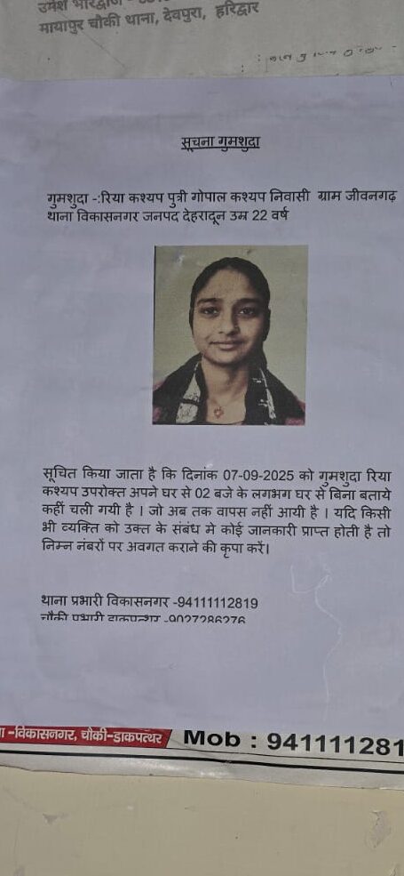 7 सितंबर को विकासनगर कोतवाली क्षेत्र में 22 वर्षीय युवती के अपहरण और हत्या का मामला सामने आया। पुलिस के अनुसार युवती को तीन आरोपियों ने बाइक पर उठाकर कुल्हाल क्षेत्र ले गए, जहां मुख्य आरोपी और उसके साथी ने युवती की हत्या कर शव को शक्तिनहर में फेंक दिया।