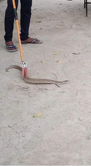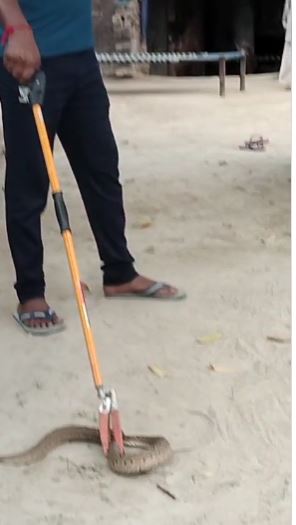 सांप को देखकर ग्रामीणों में हड़कंप मच गया। ग्रामीणों ने तुरंत वन विभाग को सूचना दी, लेकिन टीम के देर से पहुंचने पर गांव के युवा सर्प विशेषज्ञ मोहन ने अपनी सूझबूझ और हिम्मत का परिचय देते हुए सांप को पकड़कर सुरक्षित रेस्क्यू किया। इसके बाद मोहन ने सांप को जंगल में छोड़ दिया।
