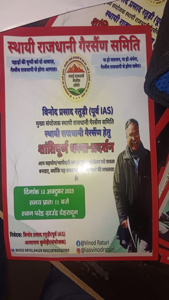 उत्तराखंड की स्थाई राजधानी गैरसैंण की मांग को लेकर पूर्व आईएएस अधिकारी विनोद प्रसाद रतूड़ी एक बार फिर बड़े आंदोलन की तैयारी में हैं। राज्य गठन के लगभग 25 वर्ष पूरे होने के बावजूद उत्तराखंड को अभी तक स्थाई राजधानी नहीं मिल पाई है, जिससे पहाड़ी क्षेत्रों में शिक्षा, चिकित्सा और रोजगार की कमी के कारण भारी पलायन हो रहा है।