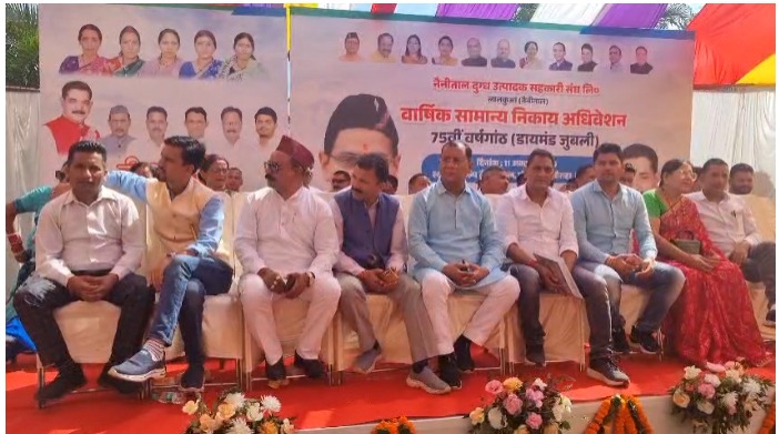 नैनीताल दुग्ध संघ ने आज अपने वार्षिक सामान्य निकाय बैठक की 75वीं वर्षगांठ पर डायमंड जुबली कार्यक्रम का आयोजन किया। इस मौके पर मेयर गजराज बिष्ट, दुग्ध संघ अध्यक्ष मुकेश बोरा और अन्य कई वरिष्ठ नेताओं ने शिरकत की।