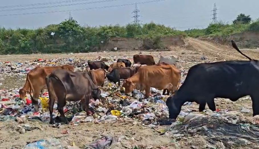 तस्वीरों में साफ़ देखा जा सकता है कि नदी किनारे प्लास्टिक, पॉलीथिन और अन्य जहरीली चीज़ें खुलेआम पड़ी हैं। गौवंश इन्हें खाते हुए दिखाई दे रहे हैं। जबकि शासन-प्रशासन गौ संरक्षण की बड़ी बातें करता है, वास्तविक स्थिति तस्वीरों में स्पष्ट रूप से दिख रही है।
