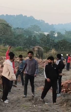 सड़क किनारे हाथी के पहुंचते ही बड़ी संख्या में लोग मौके पर जमा हो गए। हैरान करने वाली बात यह रही कि कुछ युवक हाथी के बेहद नजदीक जाकर वीडियो बनाने लगे, जिससे उनकी जान जोखिम में पड़ गई। लोगों ने ऐसी लापरवाही पर नाराजगी जताई।