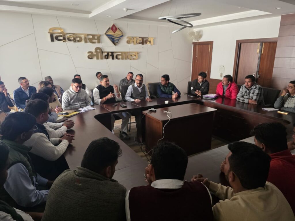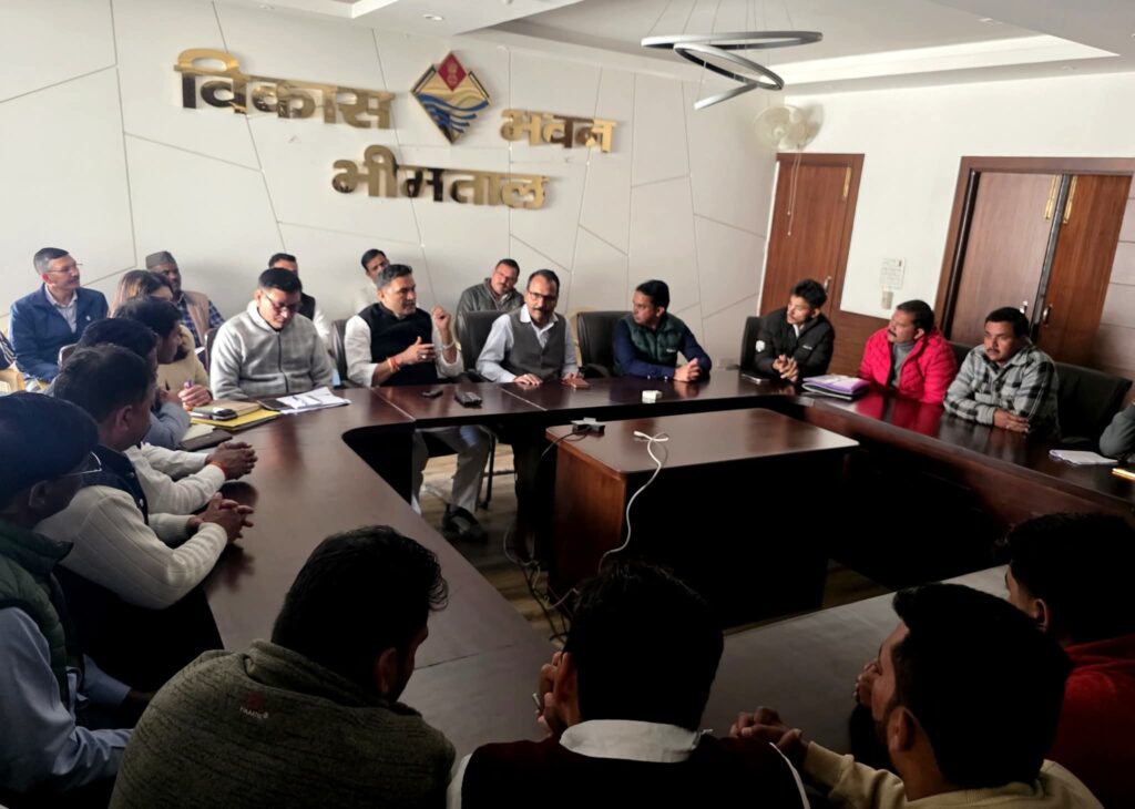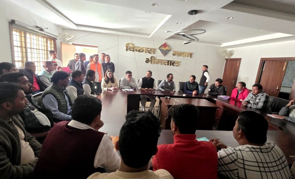 भीमताल विधानसभा क्षेत्र में भारी बरसात से हुए व्यापक नुकसान को देखते हुए विधायक राम सिंह कैड़ा ने शुक्रवार को भीमताल विकास भवन में जिलाधिकारी नैनीताल ललित मोहन रायाल के साथ महत्वपूर्ण बैठक की। बैठक में विधायक कैड़ा ने अपने क्षेत्र की गंभीर समस्याओं से जिलाधिकारी को अवगत कराया और त्वरित राहत व पुनर्निर्माण कार्यों की मांग की।
