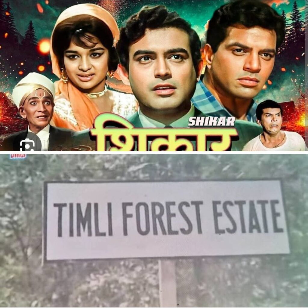 बताया जा रहा है कि साल 1968 में धर्मेंद्र की फिल्म “शिकार” की शूटिंग टिमली के जंगल और आसपास के क्षेत्रों में हुई थी। उस समय गांव के निवासी पहली बार बड़े पर्दे के अभिनेता को देखने के लिए उत्साहित हुए। बुजुर्गों के अनुसार, फिल्म की शूटिंग चिड़ीबेली, फॉरेस्ट गेस्ट हाऊस और हिमालय की तलहटी वाले शिवालिक पहाड़ियों में हुई थी।
