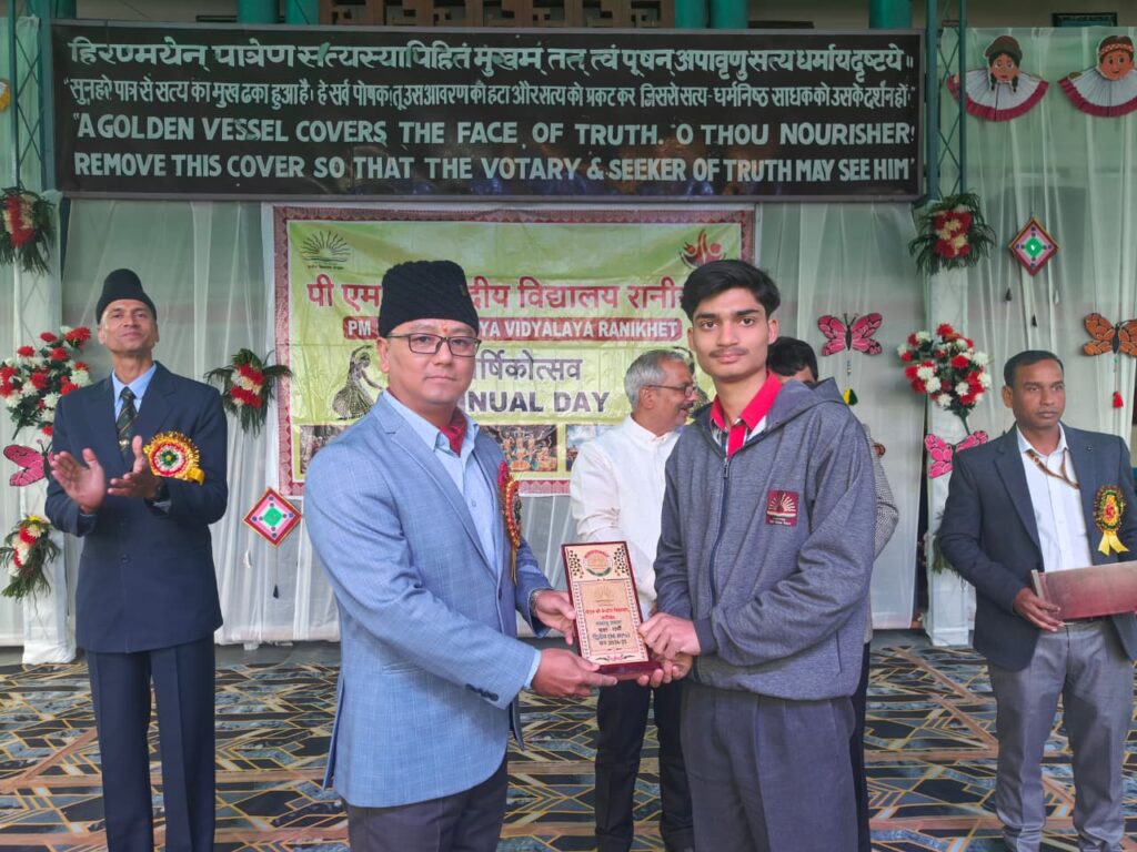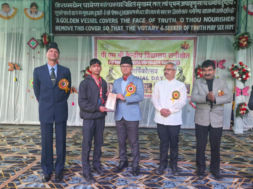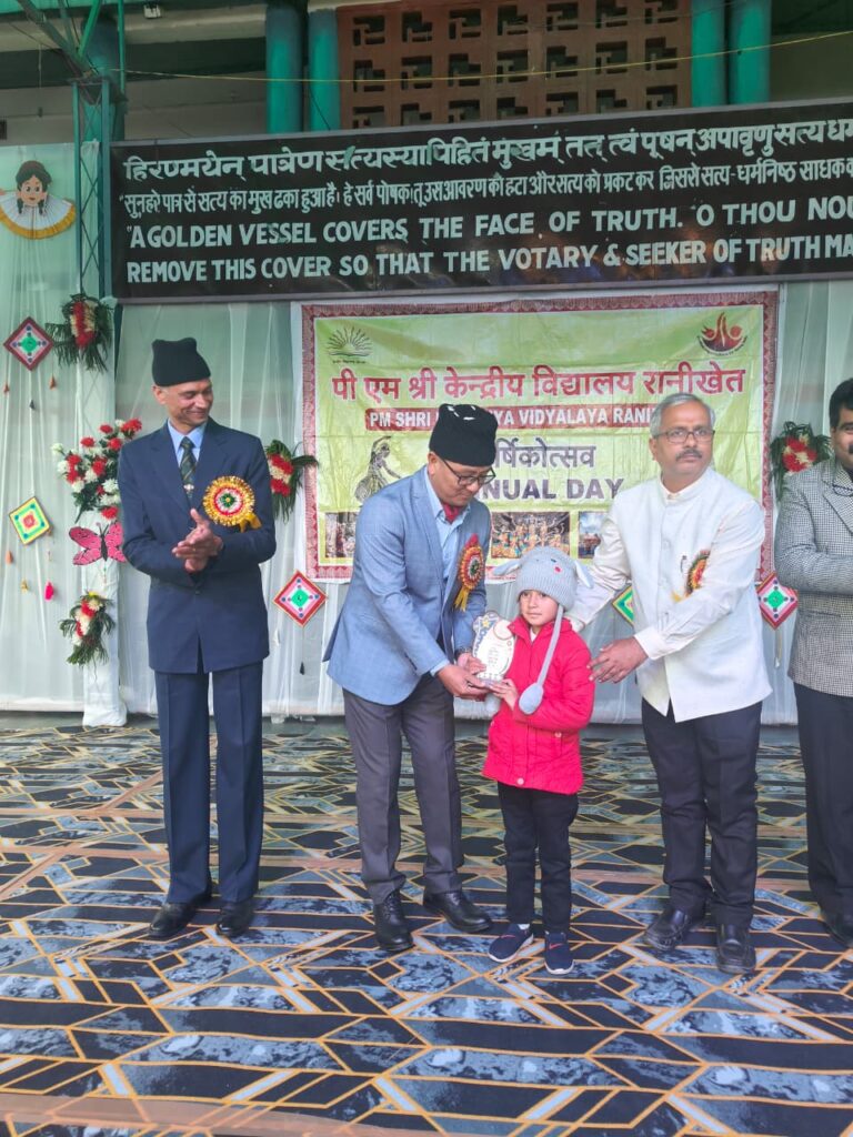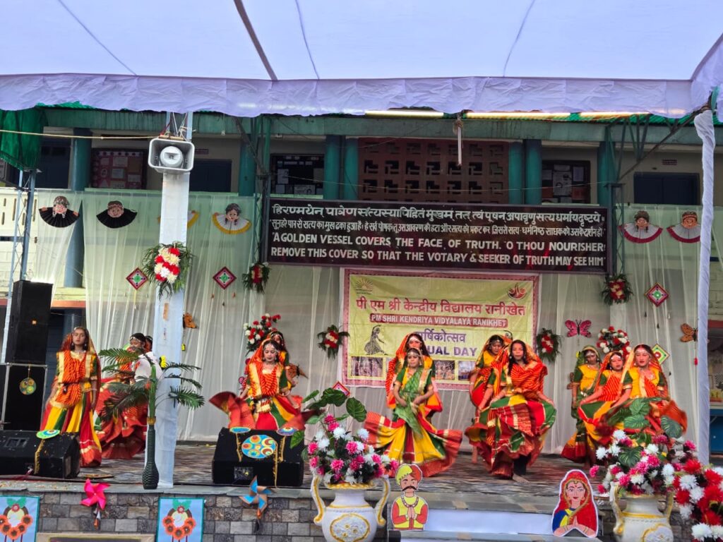 पी.एम. श्री केंद्रीय विद्यालय, रानीखेत का वार्षिकोत्सव 2025–26 उत्साह और हर्षोल्लास के साथ मनाया गया। कार्यक्रम के मुख्य अतिथि कर्नल प्रभु रामदास वामन, डिप्टी कमांडेंट, कुमाऊँ रेजिमेंट सेंटर तथा विशिष्ट अतिथि लेफ्टीनेंट कर्नल बी. बी. थापा का विद्यालय बैंड ने मुख्य द्वार से मंच तक भव्य स्वागत किया। मुख्य अतिथि ने माँ ज्ञानेश्वरी के सम्मुख दीप प्रज्वलित कर कार्यक्रम का शुभारंभ किया।
