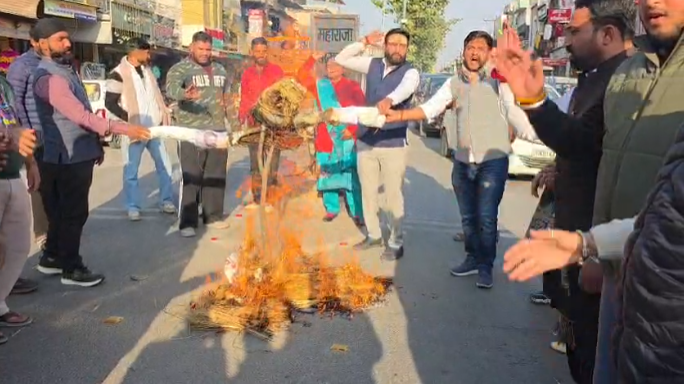 कार्यकर्ताओं ने रेवंत रेड्डी का पुतला दहन किया और नारेबाजी करते हुए अपना विरोध दर्ज कराया। विकासनगर के पहाड़ी गली चौक पर बड़ी संख्या में एकत्र हुए कार्यकर्ताओं ने हाथों में बैनर–पोस्टर लिए और ‘मुर्दाबाद’ के नारे लगाए।