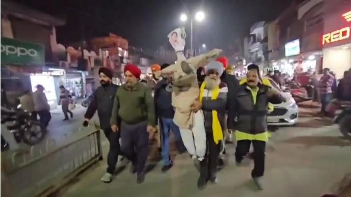 शुक्रवार को सिख समाज के दर्जनों लोग नगर के मुख्य बाजार से जुलूस की शक्ल में दीनदयाल चौक पहुंचे। इससे पहले विरोध प्रदर्शन के तहत लोगों ने हरक सिंह रावत के पुतले को जूतों की माला पहनाकर अपना आक्रोश व्यक्त किया। पूरे जुलूस के दौरान लोगों ने कांग्रेस नेता के खिलाफ जमकर नारेबाजी की।