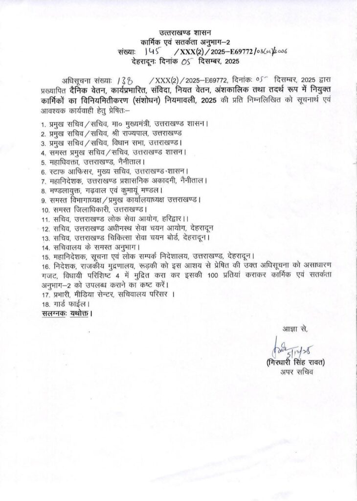 देवभूमि उत्तराखंड सफाई कर्मचारी संघ ने नगर अध्यक्ष विनय वाल्मीकि के नेतृत्व में दर्जनों सफाई कर्मचारियों के साथ उप-जिलाधिकारी के माध्यम से मुख्यमंत्री को ज्ञापन भेजा। ज्ञापन में 4 दिसंबर 2018 के कर्मचारियों के नियमितीकरण के आदेश का स्वागत करते हुए संघ ने यह भी मांग की कि 4 दिसंबर 2018 से पहले 10 वर्ष पूर्ण करने वाले कर्मचारियों को भी नियमित किया जाए।