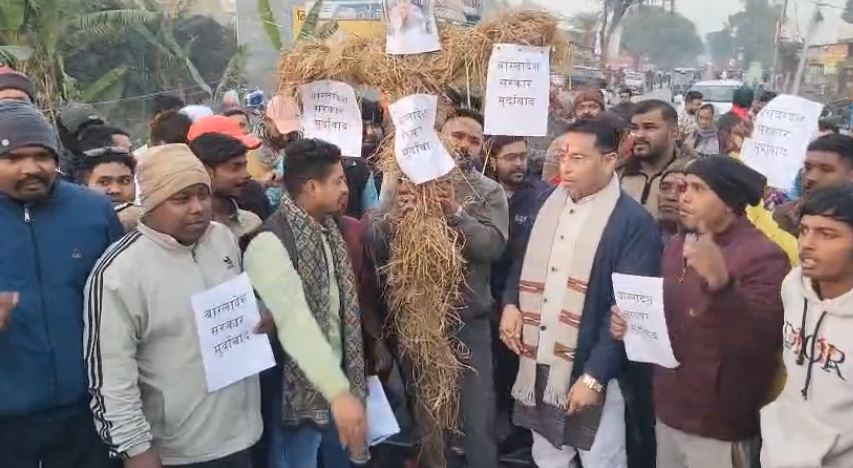 बांग्लादेश में हिन्दू युवक दीपू चंद्र दास की निर्मम हत्या को लेकर देशभर में आक्रोश देखा जा रहा है। इसी कड़ी में उत्तराखंड के दिनेशपुर क्षेत्र के मोतीपुर मोड़ पर स्थानीय लोगों और भारतीय जनता पार्टी के कार्यकर्ताओं ने जोरदार प्रदर्शन किया।