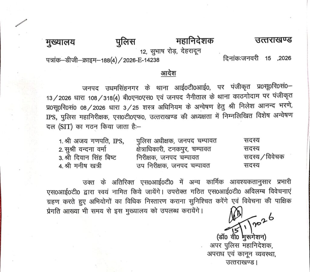 SIT सदस्यों में शामिल हैं:- पुलिस अधीक्षक चम्पावत – अजय गणपति