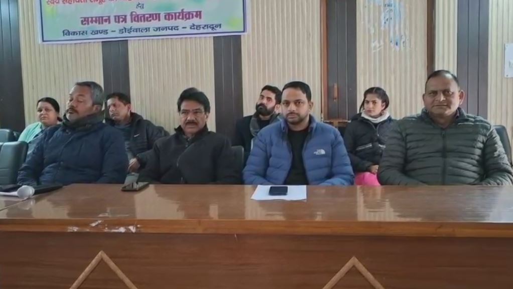डोईवाला ब्लॉक सभागार में राष्ट्रीय ग्रामीण आजीविका मिशन (एनआरएलएम) के अंतर्गत उत्कृष्ट कार्य करने वाली स्वयं सहायता समूहों की महिलाओं को प्रमाण पत्र देकर सम्मानित किया गया। कार्यक्रम में ब्लॉक प्रमुख गौरव सिंह और खंड विकास अधिकारी परशुराम सकलानी ने महिलाओं को सम्मानित करते हुए उनके कार्यों की सराहना की।