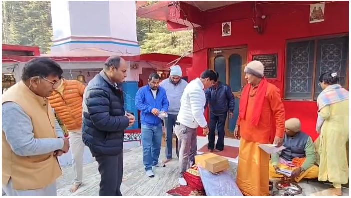 मुख्यमंत्री संस्कृति संवर्धन पहल कार्यक्रम के तहत आज शुक्रवार को जिलाधिकारी मनीष कुमार लोहाघाट के प्रसिद्ध रिकेश्वर महादेव मंदिर पहुंचे। इस दौरान उन्होंने मुख्यमंत्री पुष्कर सिंह धामी की ओर से मंदिर के पुजारी व महंतों के लिए भेंट की गई पूजन और भजन सामग्री को सम्मान सहित महंत रमेश गिरी और पुजारी लक्ष्मण पुजारी को भेंट किया।