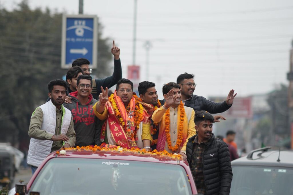 भारतीय जनता युवा मोर्चा उत्तराखंड के प्रदेश मंत्री बनने के उपरांत श्री कार्तिक हर्बोला का आज हल्द्वानी में कार्यकर्ताओं द्वारा भव्य आशीर्वाद समारोह आयोजित कर जोरदार स्वागत किया गया। कार्यक्रम की शुरुआत एच.एन. इंटर कॉलेज हल्द्वानी से वाहन रैली के रूप में हुई, जो शहर के विभिन्न मार्गों से होती हुई गणपति बैंक्वेट हॉल में संपन्न हुई।