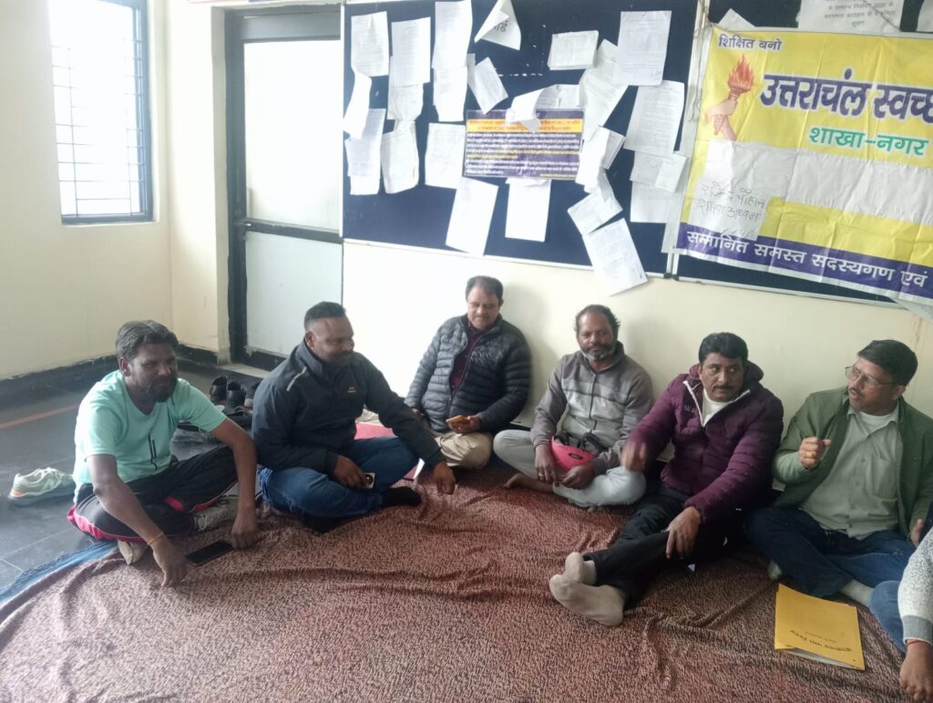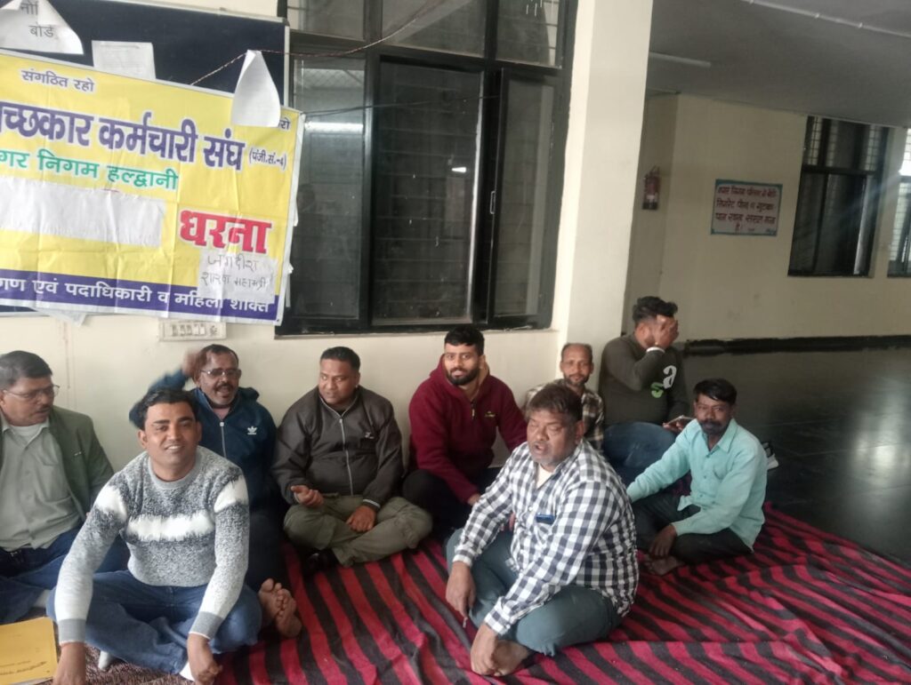 हल्द्वानी नगर निगम परिसर में सफाई कर्मचारी संघ अपनी सात सूत्रीय मांगों को लेकर पिछले 16 दिनों से धरने पर बैठा हुआ है, लेकिन अब तक नगर निगम प्रशासन की ओर से कोई ठोस पहल नहीं की गई है।