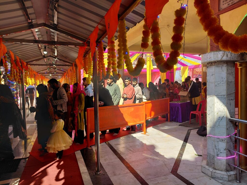 मंदिर परिसर में श्रद्धालुओं के लिए प्रसाद वितरण की भी व्यवस्था की गई है। भक्त शांतिपूर्ण और अनुशासित तरीके से पूजा-अर्चना कर रहे हैं।