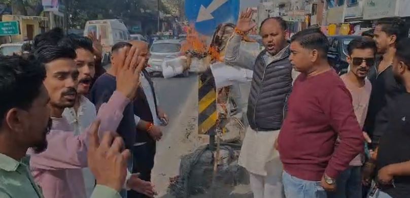 इस दौरान कार्यकर्ताओं ने नेता प्रतिपक्ष राहुल गांधी का पुतला दहन कर कड़ा विरोध दर्ज कराया। प्रदर्शन के दौरान नारेबाजी की गई और कांग्रेस के खिलाफ आक्रोश व्यक्त किया गया।