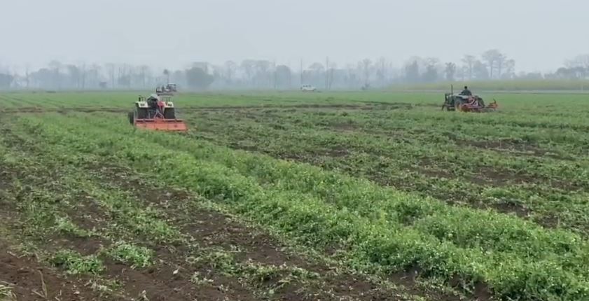 सूत्रों के अनुसार, पुलिस और राजस्व विभाग की भारी मौजूदगी में अचानक ट्रैक्टर खेतों में उतर आए और गन्ना, गेहूं, लाई और मटर की खड़ी फसल को रौंद दिया गया। पीड़ित पक्ष ने आरोप लगाया कि ट्रैक्टरों पर नंबर प्लेट तक नहीं थी, जो किसी बड़ी साजिश की ओर इशारा करता है।