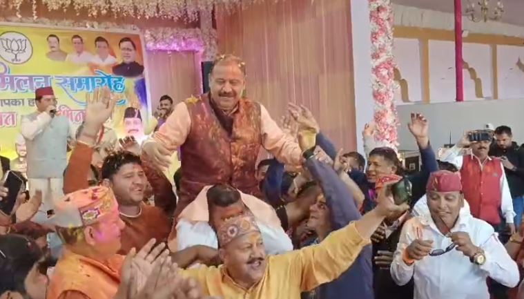 उत्साह के इस माहौल में विधायक ब्रज भूषण गैरोला भी स्वयं को रोक नहीं पाए और होली के गीतों पर थिरकते नजर आए। उनके साथ अन्य पार्टी पदाधिकारी और कार्यकर्ता भी रंगों की मस्ती में झूमते दिखाई दिए।