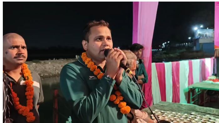 मौके पर स्पर्श गंगा अभियान की टीम के सोशल मीडिया प्रभारी सौरभ शर्मा, जिला कोऑर्डिनेटर जॉनी लांबा और जिला उपाध्यक्ष प्रिंस गुप्ता ने आचार्य का पुष्प वर्षा से स्वागत किया।