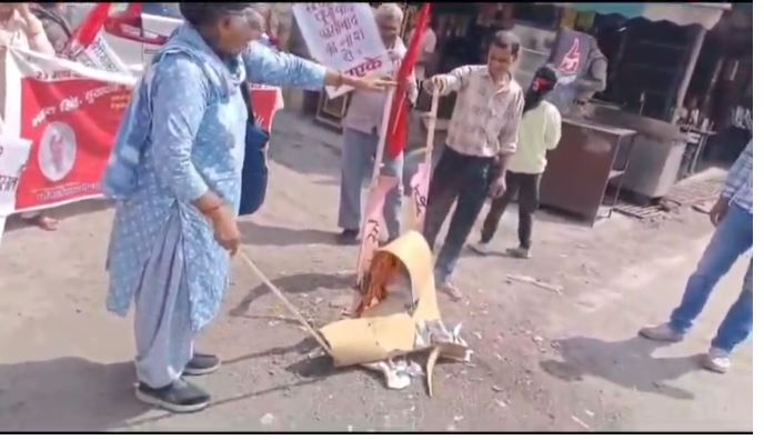 प्रभात फेरी के अंत में अमेरिकी साम्राज्यवाद के विरोध में पुतला दहन कर विरोध जताया गया।