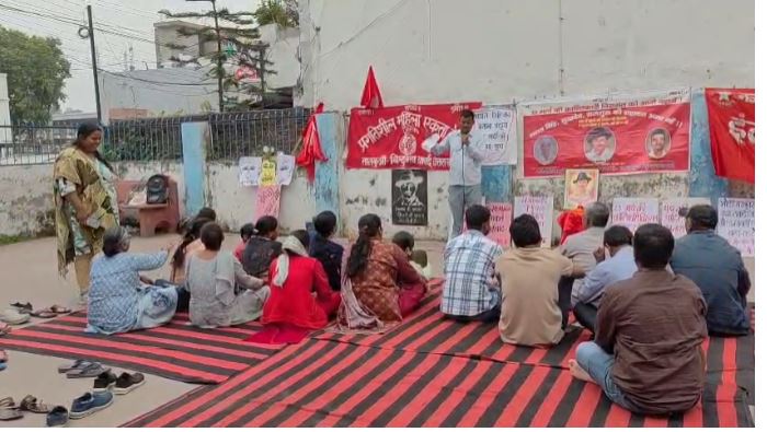 बिन्दुखत्ता क्षेत्र में भगत सिंह, राजगुरु और सुखदेव की शहादत दिवस पर इंकलाबी मजदूर केन्द्र और प्रगतिशील महिला एकता केन्द्र ने संयुक्त रूप से श्रद्धांजलि सभा का आयोजन किया। सभा में शहीदों के चित्र पर पुष्प वर्षा कर उन्हें नमन किया गया।