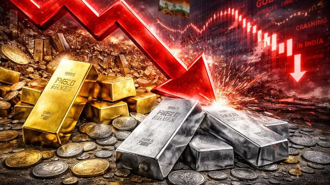 मिडिल ईस्ट में तनाव और बुधवार की तेजी के बाद गुरुवार को सोना और चांदी की कीमतों में अचानक भारी गिरावट दर्ज की गई। एमसीएक्स पर शाम 5 बजे ट्रेडिंग शुरू होते ही सोना 2.10% यानी करीब 3,064 रुपए प्रति 10 ग्राम सस्ता हो गया। वहीं, चांदी में 5.25% यानी 12,333 रुपए प्रति किलोग्राम की बड़ी गिरावट आई।