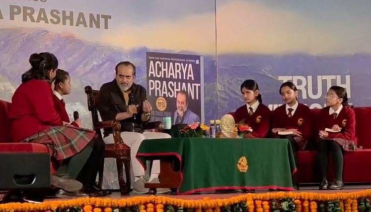 कार्यक्रम के दौरान आचार्य प्रशांत ने जूनियर और सीनियर छात्राओं के साथ एक विशेष संवाद सत्र में भाग लिया। इस सत्र में छात्राओं ने विभिन्न विषयों पर अपने प्रश्न रखे, जिनका उन्होंने सरल और प्रभावी ढंग से उत्तर दिया। उनके उत्तर न केवल संतोषजनक रहे, बल्कि छात्राओं के लिए अत्यंत प्रेरणादायक भी साबित हुए।