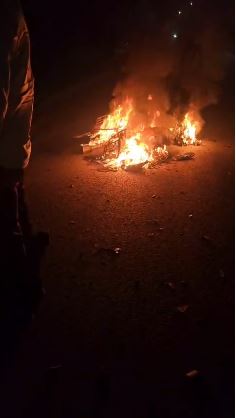 टक्कर के बाद बाइक में आग लग गई, जिससे घटनास्थल पर अफरा-तफरी मच गई और क्षेत्र में कोहराम का माहौल बन गया। स्थानीय लोगों ने तुरंत पुलिस और फायर ब्रिगेड को सूचना दी।