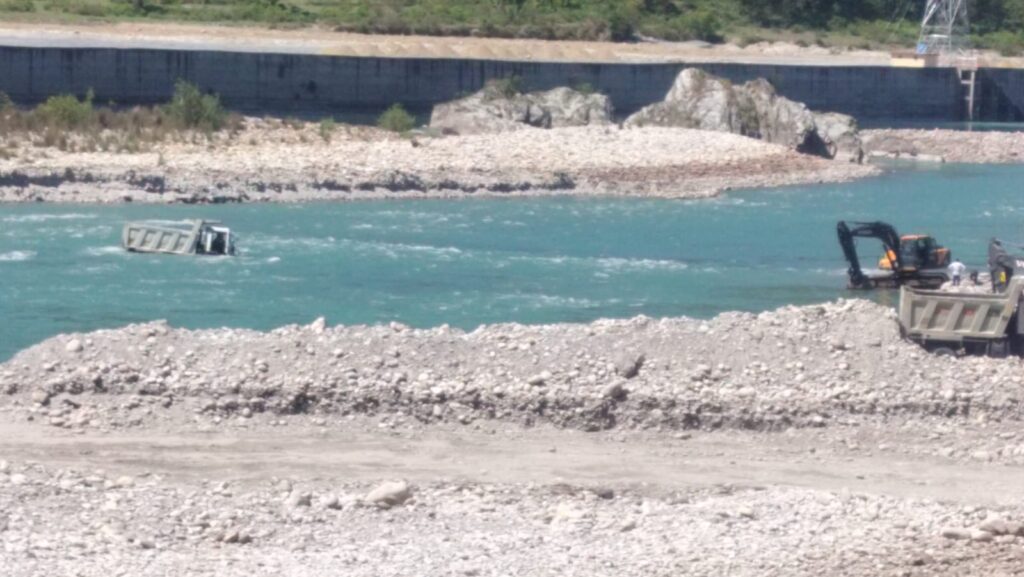 बताया जा रहा है कि डंपर खनन सामग्री लेने के लिए नदी में उतरा था। इसी दौरान अचानक जीवीके जल विद्युत परियोजना की ओर से पानी छोड़े जाने के कारण नदी का जलस्तर तेजी से बढ़ गया और डंपर बीच धारा में फंस गया।