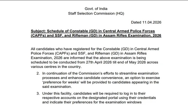 कर्मचारी चयन आयोग (SSC) ने जीडी कॉन्स्टेबल भर्ती परीक्षा 2026 का एग्जाम शेड्यूल जारी कर दिया है। जिन उम्मीदवारों ने इस भर्ती के लिए आवेदन किया था और लंबे समय से परीक्षा तिथि का इंतजार कर रहे थे, उनके लिए अब बड़ा अपडेट सामने आया है।