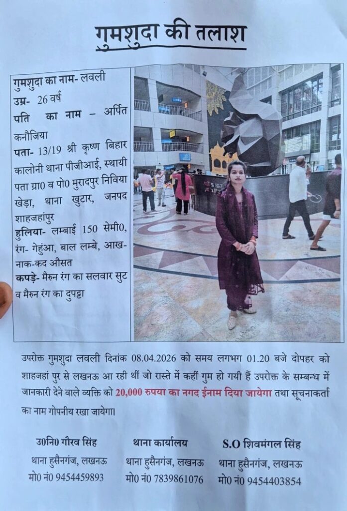 उत्तर प्रदेश की राजधानी लखनऊ में एक 26 वर्षीय युवती लवली के संदिग्ध परिस्थितियों में लापता होने का मामला सामने आया है। युवती के गायब हुए छह दिन बीत चुके हैं, लेकिन अभी तक उसका कोई सुराग नहीं मिल सका है, जिससे परिवार की चिंता लगातार बढ़ती जा रही है।