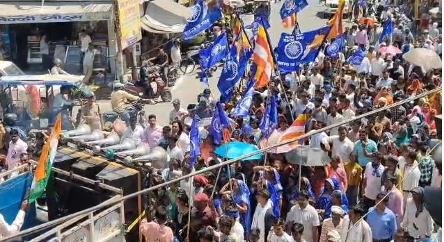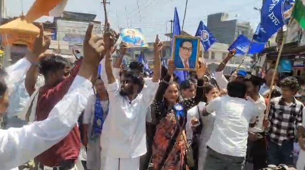 पूरे क्षेत्र में नीले झंडों और “जय भीम” के नारों से वातावरण गूंज उठा। श्रद्धालुओं में भारी उत्साह देखने को मिला और लोगों ने बाबा साहेब के विचारों को याद किया।