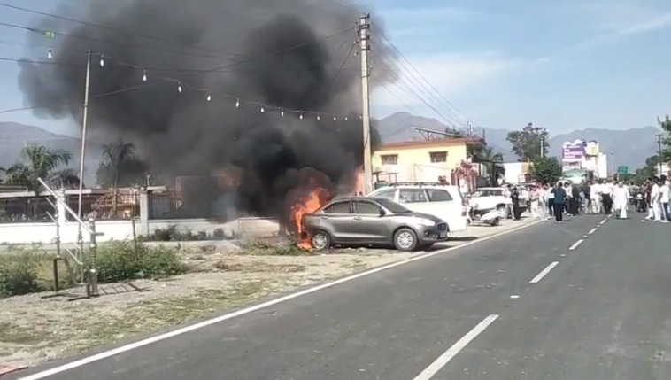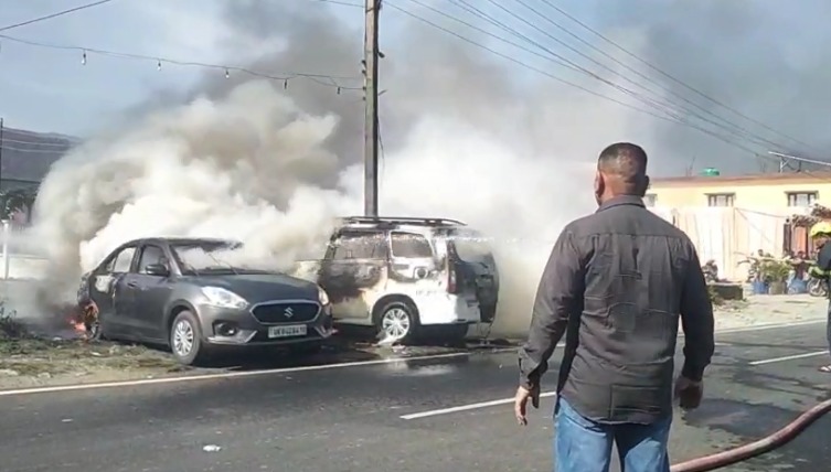 आग इतनी तेजी से फैली कि पार्किंग में खड़ी दो कारें पूरी तरह जलकर राख हो गईं। घटना के समय कार सवार लोग शादी समारोह में शामिल थे, जिससे मौके पर अचानक अफरा-तफरी मच गई और लोग इधर-उधर भागने लगे।